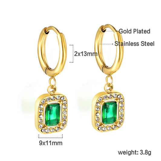 Wholesale Stainless Steel Square Earrings | Emerald Zircon Bulk