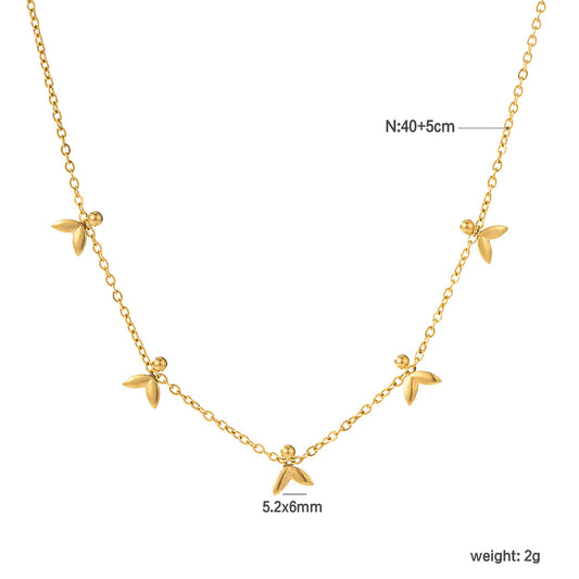 Wholesale Waterproof PVD Gold Sculpted Leaf & Bead Station Necklace