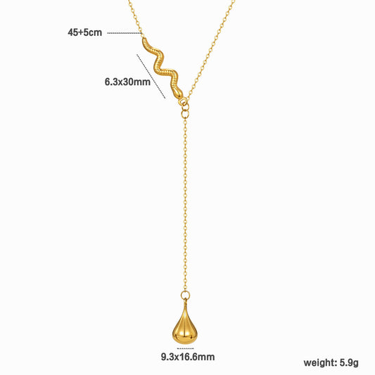 Wholesale Waterproof PVD Gold Sculpted Snake & Drop Y-Necklace