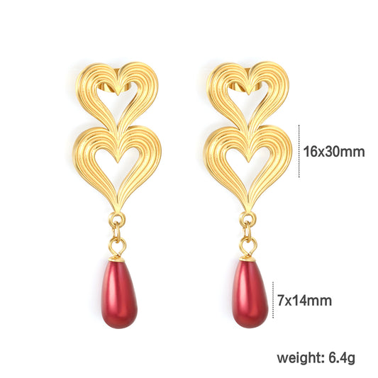 Bulk Stainless Steel Pearl Earrings | Red Drop Heart Studs