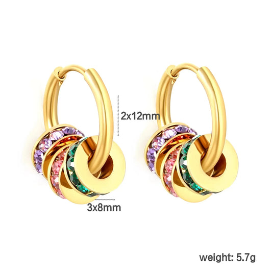 Stainless Steel Earrings | Colorful Zircon Multi-Layer Hoops