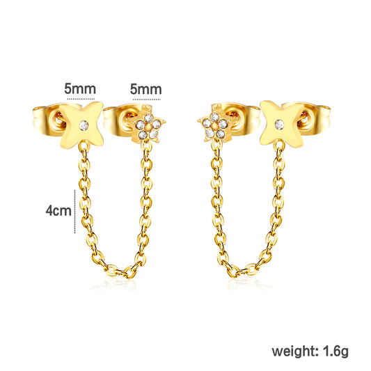 Bulk PVD Gold Pave CZ Star Long Chain Dangle Earrings Waterproof