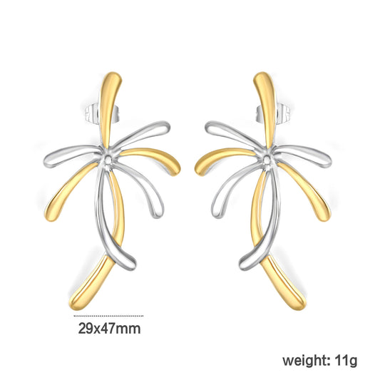 Wholesale Waterproof PVD Gold/Silver Sculpted Palm Tree Studs
