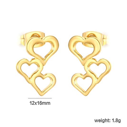 Tiny Triple Heart Stacked Studs Stainless Steel Waterproof