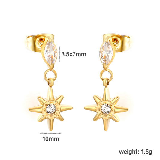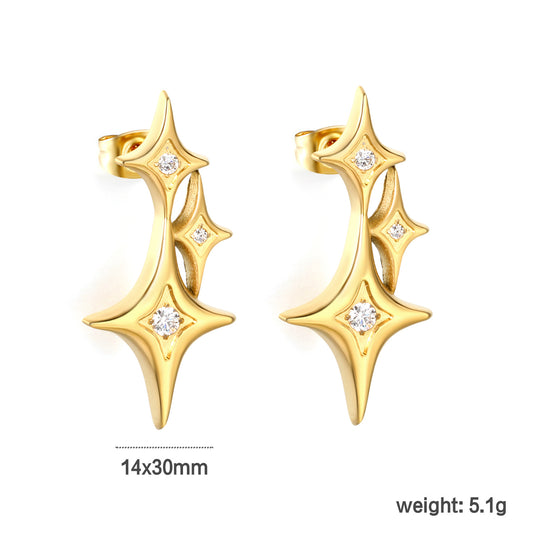 Celestial Star Motif CZ Stud Earrings Stainless Steel Waterproof