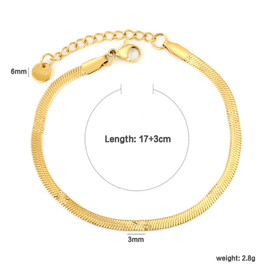 Wholesale Waterproof PVD Gold Polished Sculpted Snake Chain Bracelet
