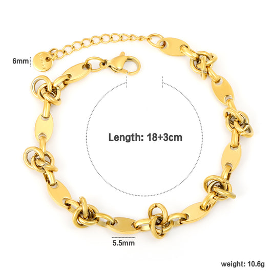 Wholesale Waterproof PVD Gold Minimalist Oval Loop Chain Bracelet