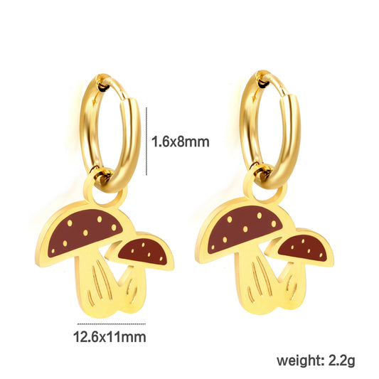 Bulk 18K Gold Mushroom Hoop Earrings Hypoallergenic