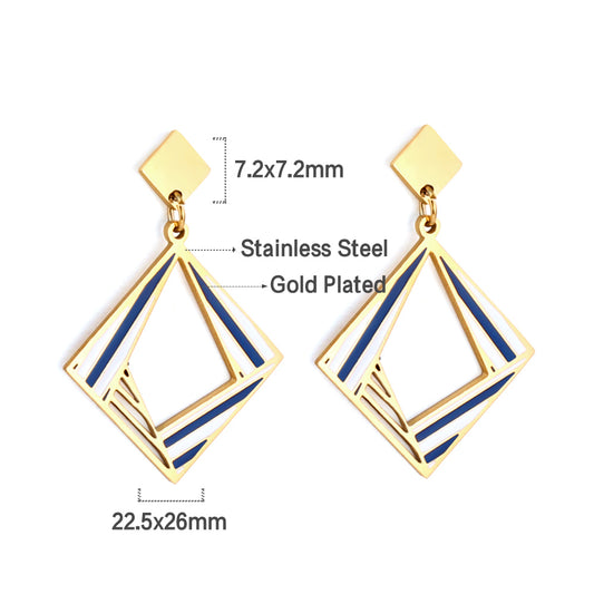 Bulk 18K Gold Diamond Square Earrings for Jewelry Vendors Unique Design