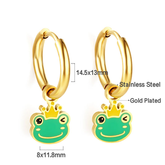 Bulk 18K Gold Green Frog Hoop Earrings Fun - filled Design