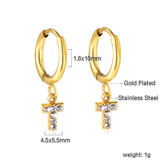 Bulk 18K Gold Letter T Diamond Hoop Earrings Stylish