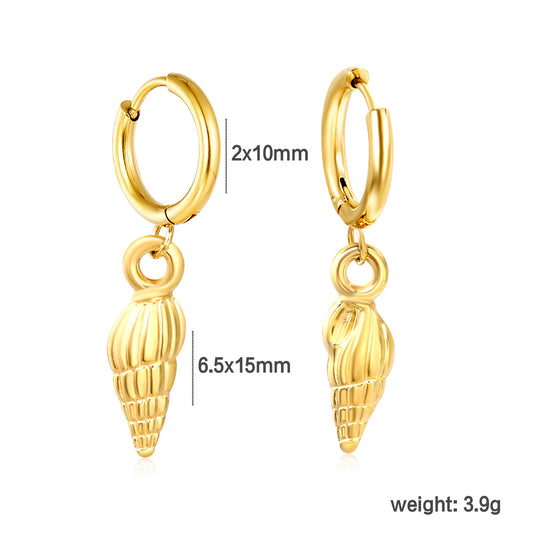 Bulk 18K Gold Plated Coastal Conch Shell Charm Hoop Earrings