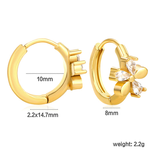 Bulk 18K Gold Plated Botanical Cross-Flower Zircon Hoop Earrings