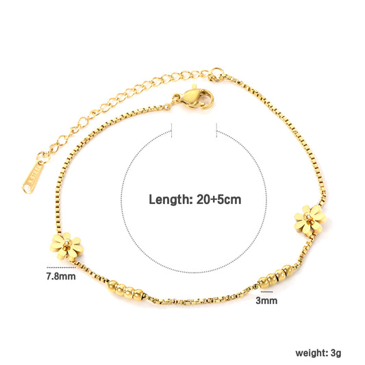 Bulk 18K Gold Plated Botanical Flower & Bead Anklet