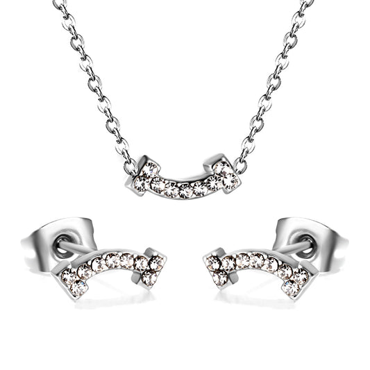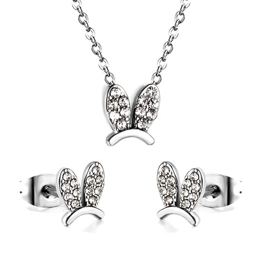 Wholesale Stainless Steel Rabbit Ear Necklace Earrings Set CZ Trim Design