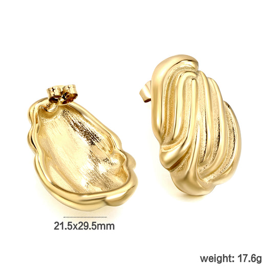 Wholesale Stainless Steel Small Scallop + Large Scallop with Textured Face Earrings