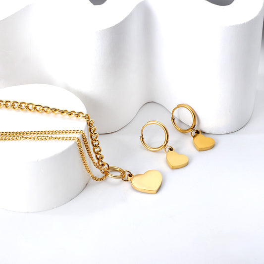 Wholesale Stainless Steel Simple Heart Necklace Earrings Set Everyday Wear Design
