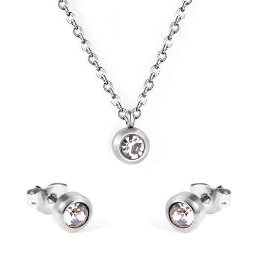 Wholesale Stainless Steel Round CZ Necklace Earrings Set With Bezel Setting