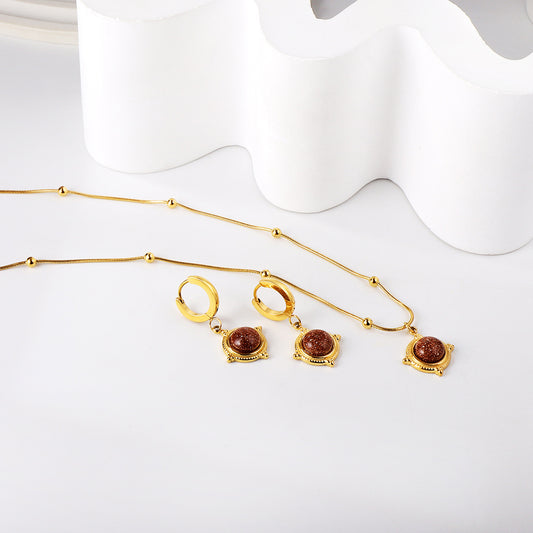 Wholesale Stainless Steel Rhodonite Necklace Earrings Set With Gold Spacer Beads