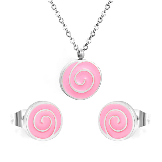 Wholesale Stainless Steel Spiral Necklace Earrings Set Rose Gold Design