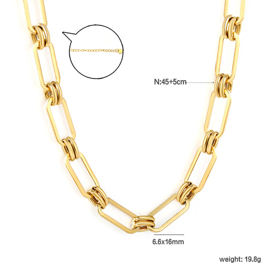 Wholesale Waterproof PVD Gold Chunky Geometric Link Chain Necklace