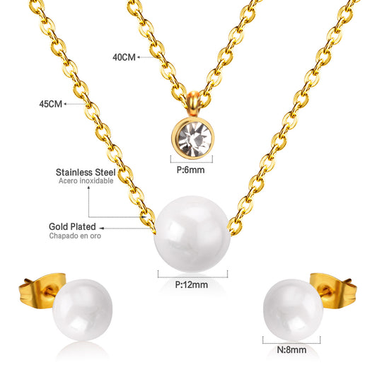 Wholesale Two Layer Pearl Diamond Necklace Earrings Set Stainless Steel Design