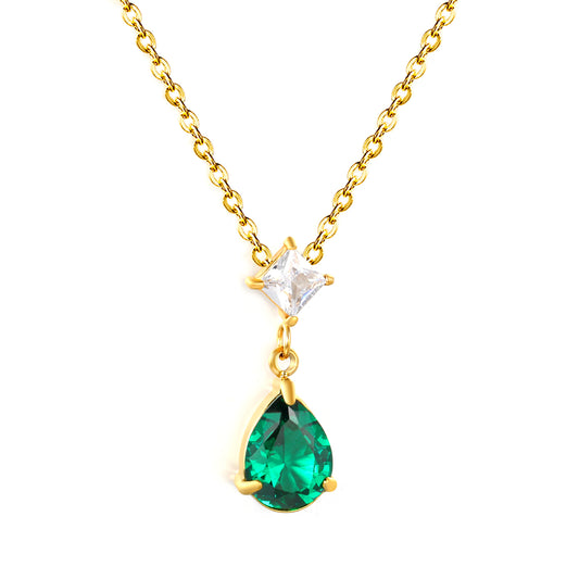 Wholesale Waterproof PVD Gold Plated Double Stone Teardrop Necklace