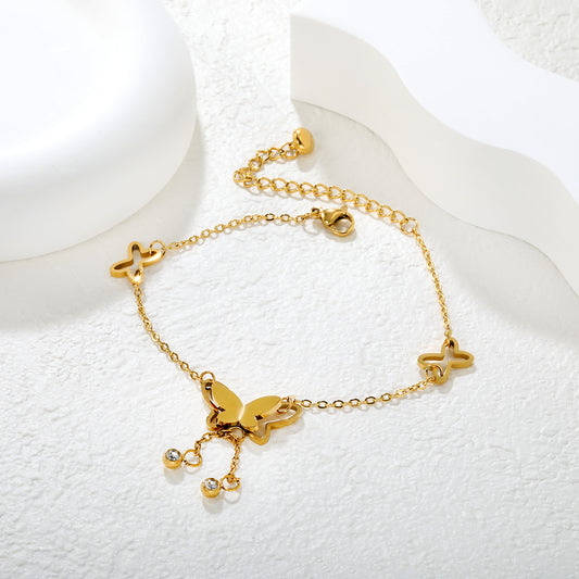 Wholesale 18K Gold Plated Butterfly Anklet With Prismatic Wings