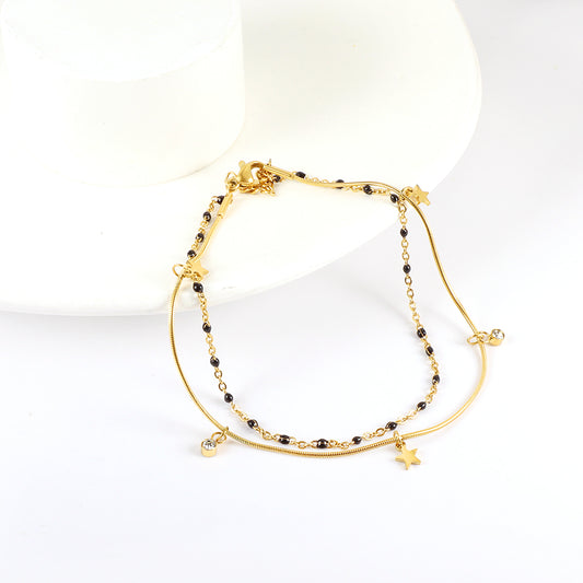 Wholesale 18K Gold Celestial Anklet With Onyx Beads and Accents