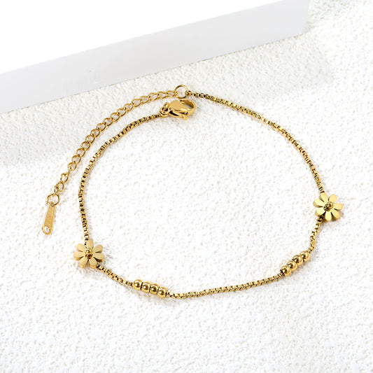 Bulk 18K Gold Plated Botanical Flower & Bead Anklet