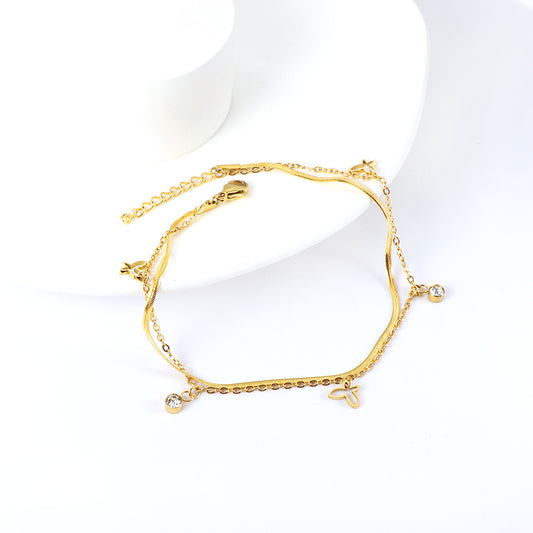 Wholesale 18K Gold Plated Lucky Anklet With Botanical Charms