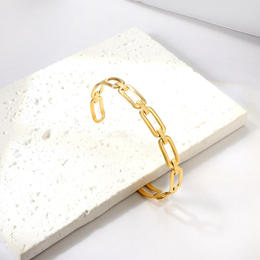 Wholesale Modern Heart Link 18K Gold Plated Open Bangle