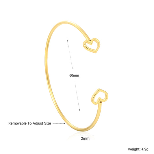Wholesale Waterproof PVD Gold Hollow Heart Open Cuff Bracelet