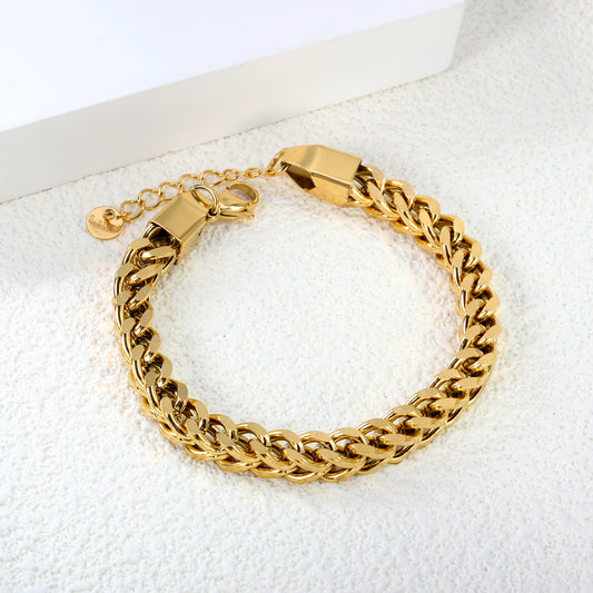 Wholesale Waterproof PVD Gold Double Weave Chunky Statement Bracelet