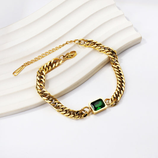 Wholesale 18K Gold Green Gem Chain Bracelet Luxurious Charm