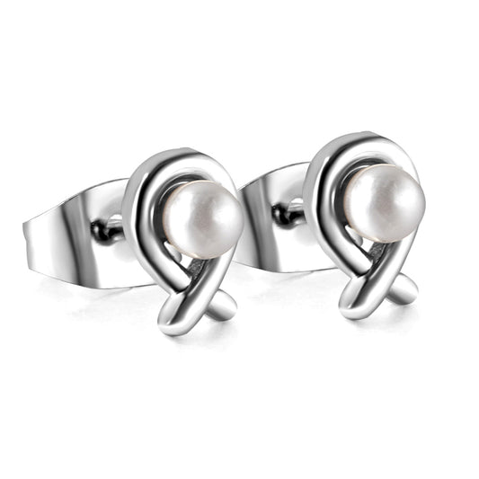 Wholesale Stainless Steel Fish Cut Earrings with White Pearls