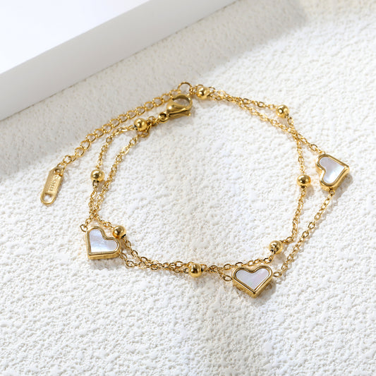 Wholesale 18K Gold Plated Pearl & Heart Dual Chain Bracelet Nautical Luxe