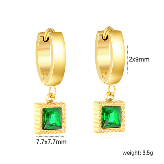 Golden spherical earrings + square emerald zirconia earrings Jewelry Supplier