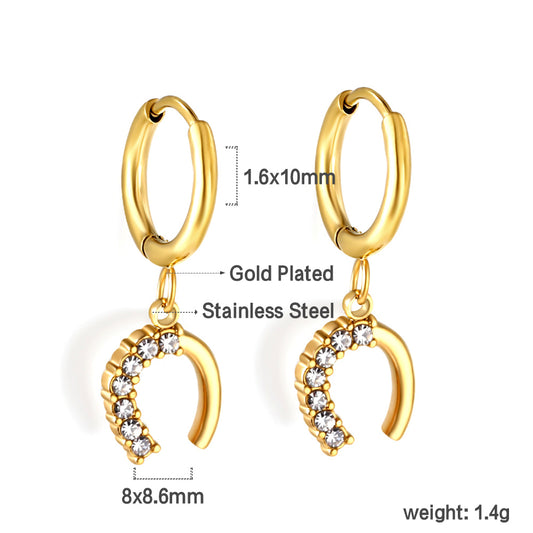 Wholesale 18K Gold Circle with U Shape White Diamond Stud Earrings