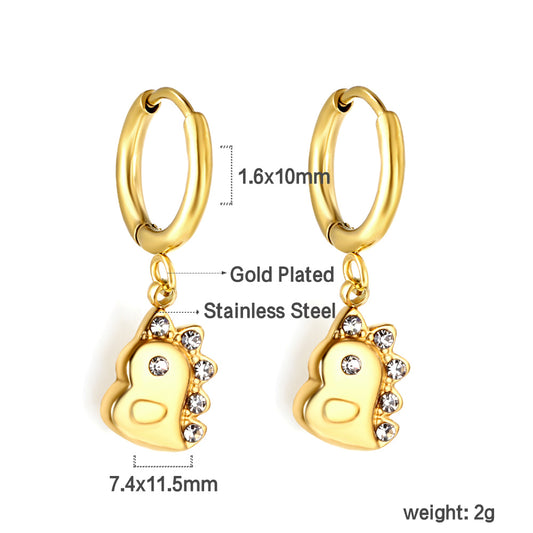 Wholesale 18K Gold Circle with Small Dinosaur White Diamond Stud Earrings