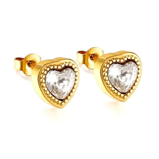Golden heart with white zirconia + cross link stud earrings Jewelry Supplier