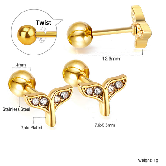 Wholesale 18K Gold Fish Tail Stud Earrings Graceful Charm