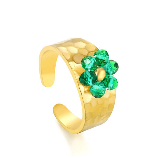 Pearl Crystal Flower Ring Set 304L Stainless Steel Gold Adjustable