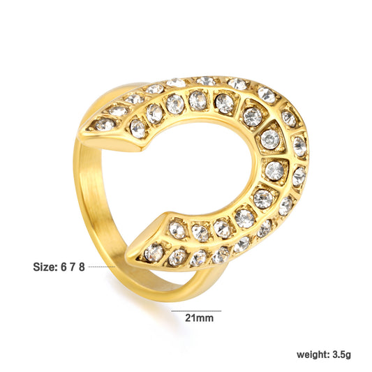 Lucky 304L Stainless Steel Horseshoe Ring | Waterproof Zircon Jewelry