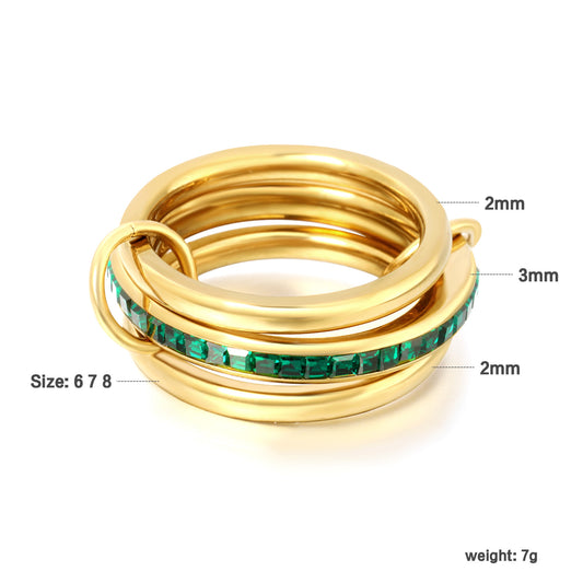 Statement Three-Layer Ring 304L Steel Gold Plated Square CZ Closed Band