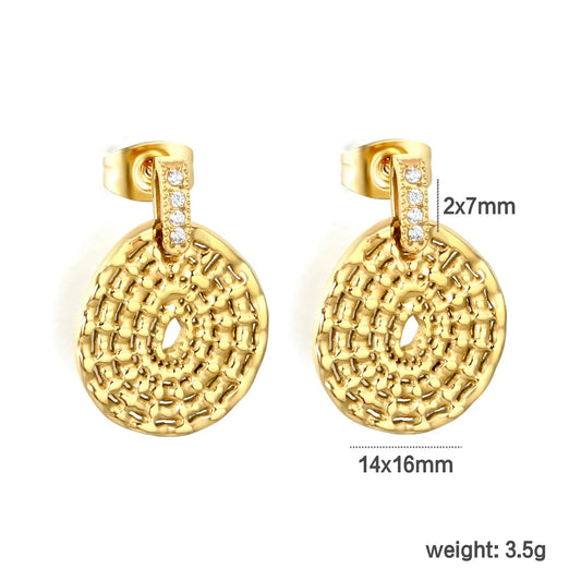 Wholesale Stainless Steel Hammered Disk Earrings | Gold PVD Bulk