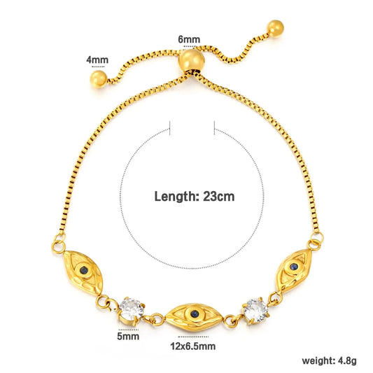 Wholesale 304L Stainless Steel Evil Eye Adjustable Bracelet