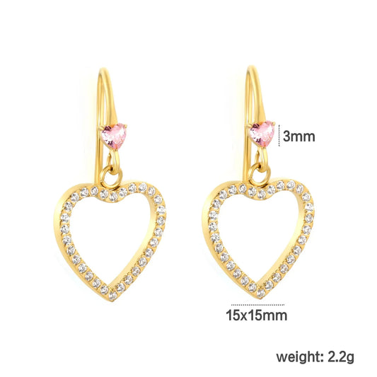 Romantic Stainless Steel Heart Earrings | Gold Hollow Dangle Hook