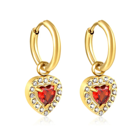 Bulk Stainless Steel Heart Earrings | Emerald Halo Zircon Hoops