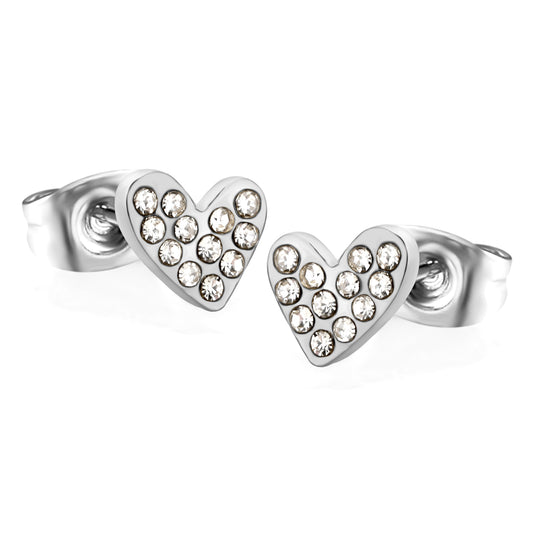 Bulk Stainless Steel Heart Earrings | Emerald Halo Zircon Hoops